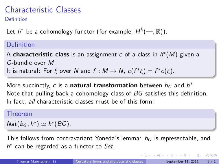 Explains a bit about characteristic classes, classifying spaces, and Chern-Gauss-Bonnet.