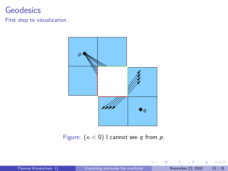 I was a graduate student mentor for an REU at the University of Arizona in 2010. Our group used Java and jReality to visualize non-Euclidean geometry by plotting the exponential map at the viewer's position--in other words, if you live on the surface of a polyhedron and lines of sight follow along geodesics, what would you see? We also managed to get it to work in a CAVE (which you can read more about here).