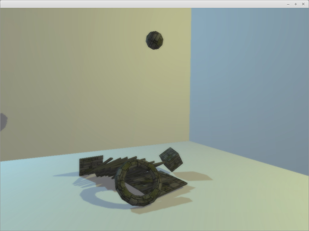 The purpose of this project was to have a common code base to work from that could run on the desktop, Android devices, or as JS in a web browser (using Google Web Toolkit). It features basic rigid body dynamics, constructive solid geometry, post-processing filters, dynaming lighting and shadows, translucency, parallax mapping, etc.
